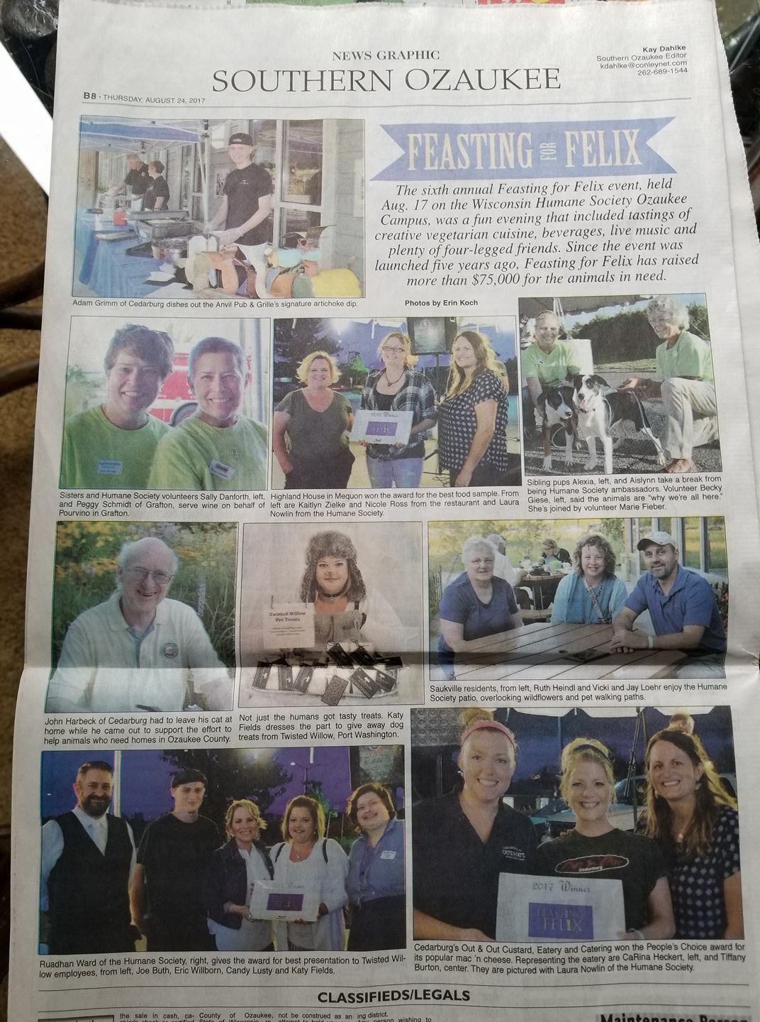 I took these photos for a local newspaper serving Ozaukee County, Wisconsin, called the News Graphic. The event I covered was Called Feasting For Felix, a Wisconsin Humane Society Fundraiser event.